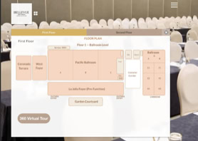 Integrated LiDAR-based capture allows spaces to be explored with spatial accuracy rather than approximation. Ballrooms connect to foyers, foyers transition into breakout rooms, and circulation between areas happens seamlessly — without page reloads or friction.